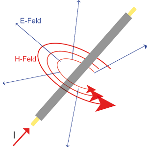 Leitungen und abgestrahlt als elektromagnetische Wellen.