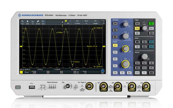 RTA4004 MSO 4+16 Kanal, 1 GHz Abtastrate bis zu 5 GSa/s, Speicher bis zu 200 MSa, 1 Gsample Segmented Memory und History-Fkt., 10 bit Auflösung, 10″ Touchscreen, 4x passive 500 MHz Tastköpfe inkl.
