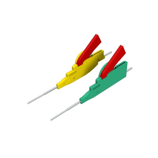 QFP IC-Clips 0,5-0,3 mm pitch lang (1 Paar, gelb/grün) Greifzange, Stift 0,64 mm, max 60V DC